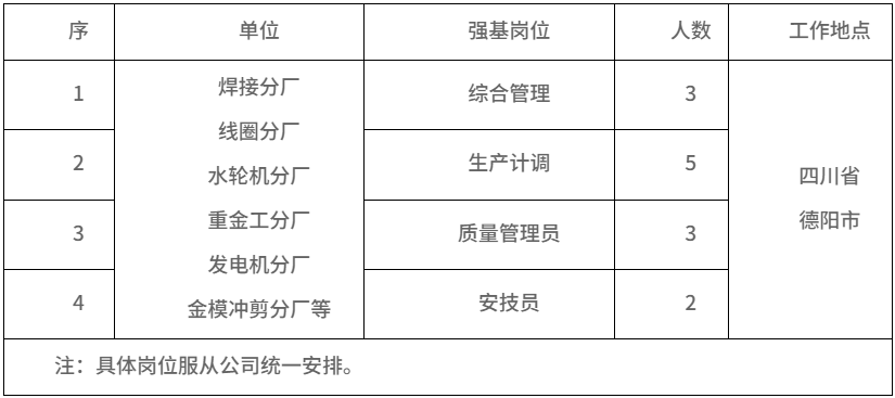 薪酬福利:六险二金、各类津补贴、免费工作餐、安家费、公寓免费居住5年(德阳市外人员)、节日慰问、健康体检等。