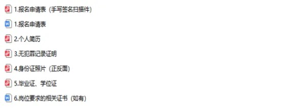 1.《报名申请表》(附件2)word版及PDF扫描件(本人签名处需本人手写签名后扫描);