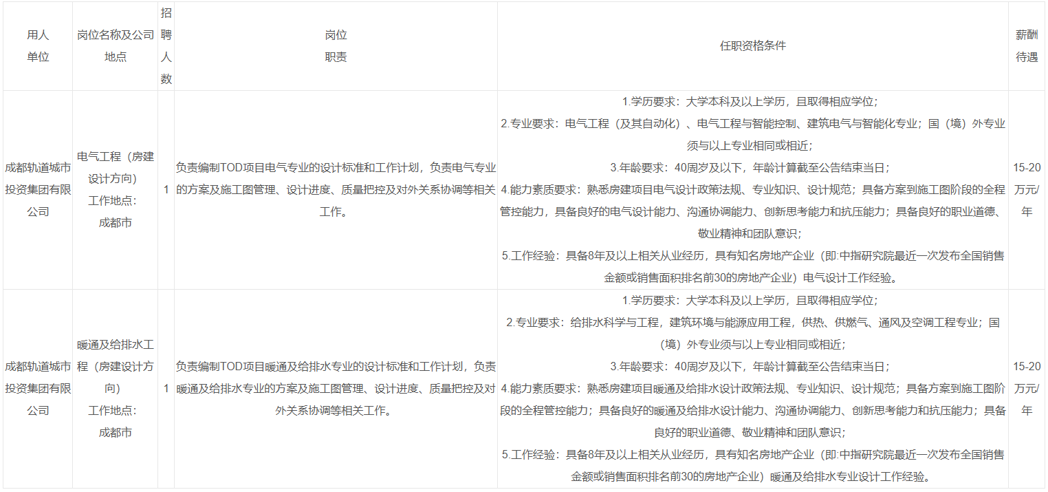 (五)应聘人员需认真阅读本公告,凡投递简历人员即视为已知晓并认同本公告全部内容。其他媒体平台转载的与本公告内容不一致的,以成都轨道交通集团有限公司官网发布的公告为准。
