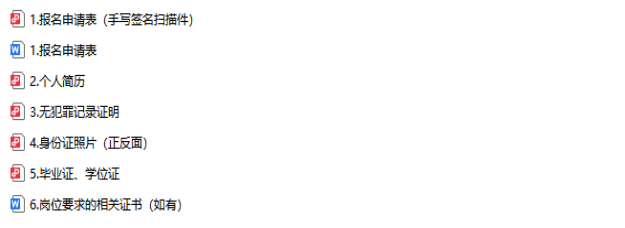 1.《报名申请表》(附件2)word版及PDF扫描件(本人签名处需本人手写签名后扫描);