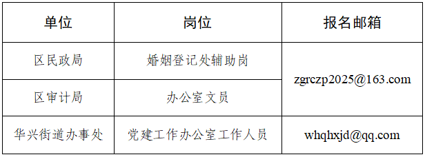 本次公开招聘仅采用网上报名方式进行,不设现场报名,其他途径(如社交平台私信、非官方链接等)提交的申请均视为无效。应聘人员在规定时限内将报名材料依岗位分别发至报名邮箱: