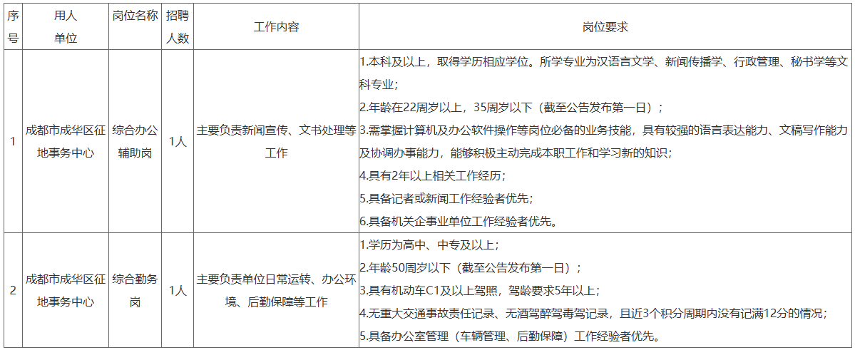 根据工作需要,按照“公开、公平、公正、择优”原则,成都市成华区规划和自然资源局所属事业单位成都市成华区征地事务中心面向社会公开招聘编外人员2名,现将有关事项公告如下。