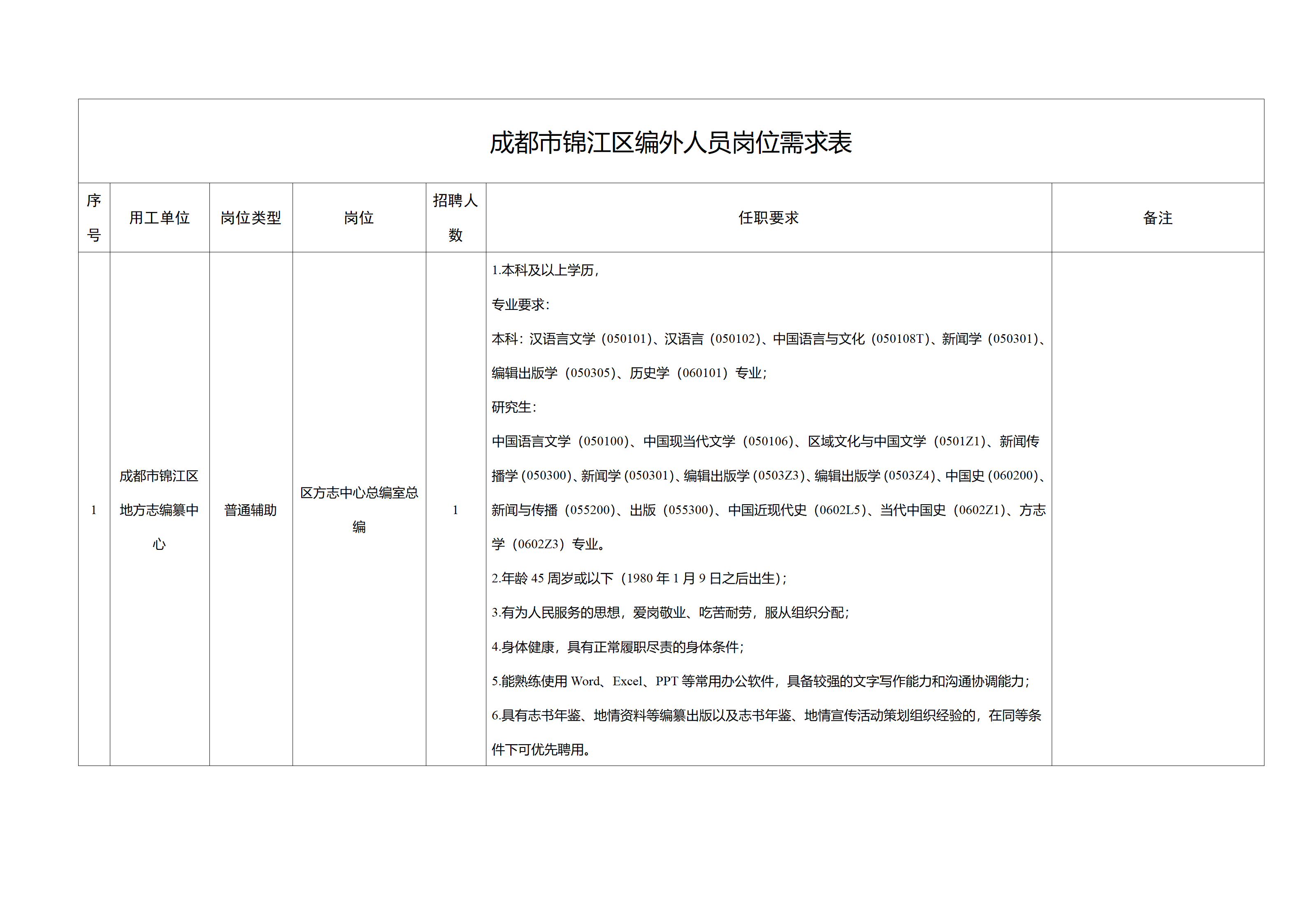 成都市锦江区方志中心招聘