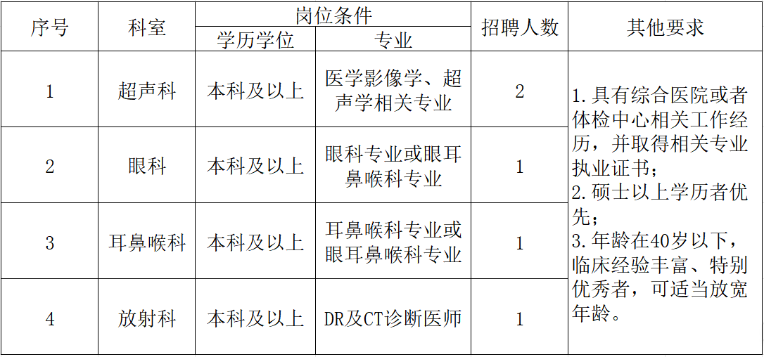 因业务发展需要,我院现面向社会招聘成熟人才,具体要求如下: